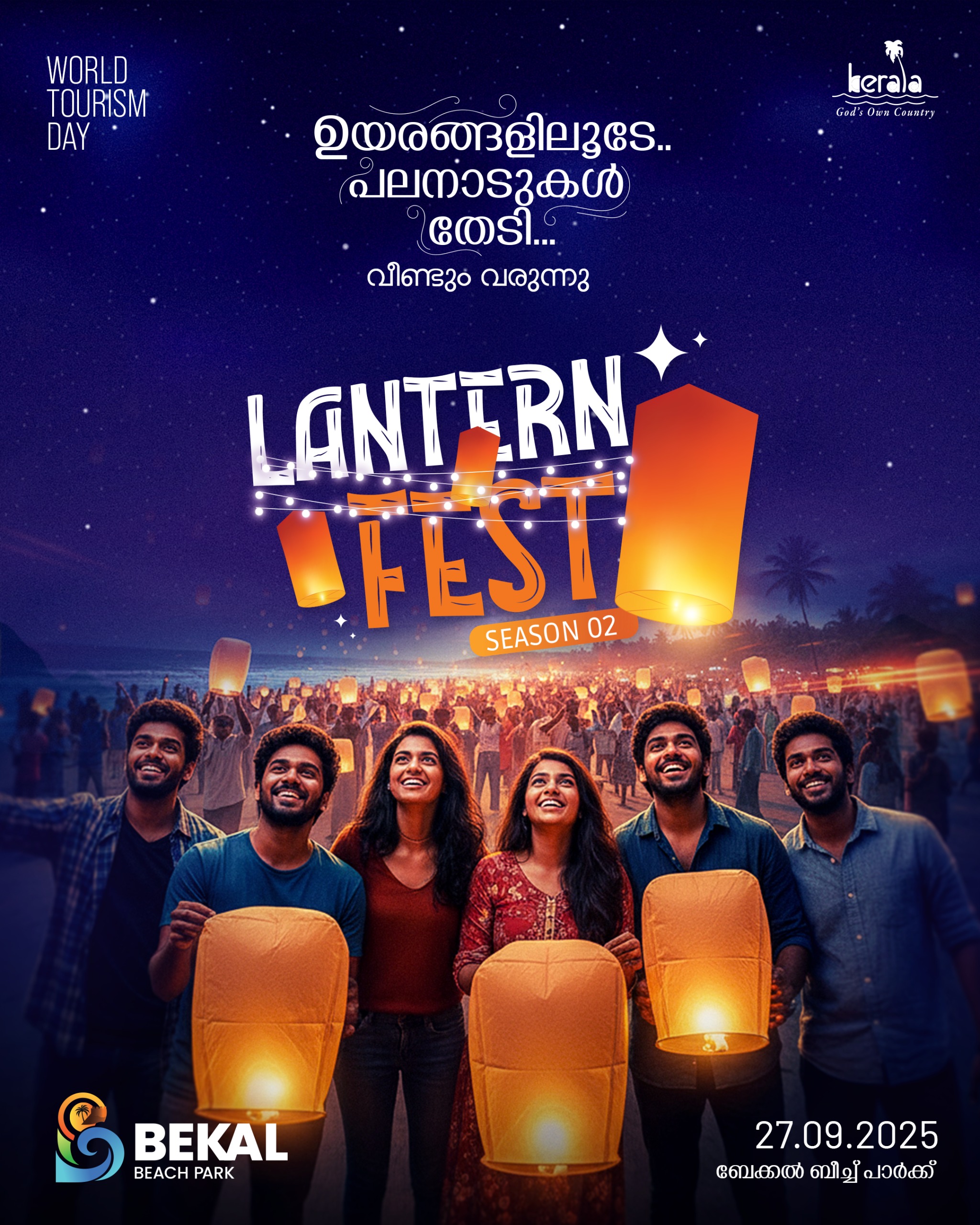Celebrate World Tourism Day at Bekal Beach Park with Lantern Fest Season 2 ā an enchanting evening of lights, togetherness, and joy as the sky glows with hundreds of lanterns.